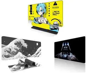 Alpha Fit Anime Gaming Mouse Pad XXL (35.4" x 15.7") - Cyberpunk Blue Haired Girl - Large Mouse Pad Extended - Extra Large Gaming Mouse Pads Yellow Caution Style - 07 and Alpha Fit Black & White Great Wave Gaming Mouse Pad XXL (35.4" x 15.7") - Monochrome Ink Wash Japanese Art Desk Mat - Minimalist Setup with Stitched Edges and Alpha Fit Star Wars Gaming Mouse Pad XXL (31.5" x 11.8") - Darth Vader Dark Side Art - Large Mouse Pad Extended - Extra Large Gaming Mouse Pads Sith Lord Desk Mat 31