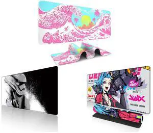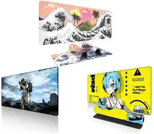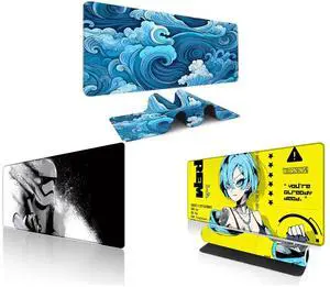 Alpha Fit Black & White Great Wave Gaming Mouse Pad XXL (35.4" x 15.7") - Monochrome Ink Wash Japanese Art Desk Mat - Minimalist Setup with Stitched Edges and Alpha Fit Starwar Gaming Mouse Pad XXL (31.5" x 11.8") - Star Wars Themed Large Mouse Pad - Extra Large Gaming Mouse Pads with Non-Slip Rubber Base & Stitched Edges for Sci-Fi Setup and Alpha Fit Anime Gaming Mouse Pad XXL (35.4" x 15.7") - Cyberpunk Blue Haired Girl - Large Mouse Pad Extended - Extra Large Gaming Mouse Pads Yellow Caution Style - 07