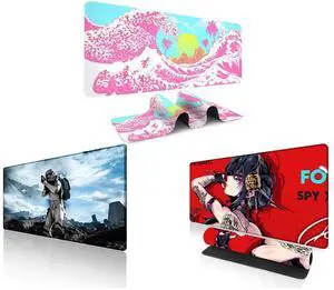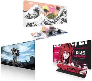 Alpha Fit Pink Sakura Great Wave Gaming Mouse Pad XXL (35.4" x 15.7") - Cute Cherry Blossom Japanese Art Desk Mat - Kawaii Aesthetic Extended Mousepad and Alpha Fit Starwar Gaming Mouse Pad XXL (31.5" x 11.8") - Star Wars Themed Large Mouse Pad - Extra Large Gaming Mouse Pads with Non-Slip Rubber Base & Stitched Edges for Sci-Fi Setup and Alpha Fit Anime Gaming Mouse Pad XXL (35.4" x 15.7") - Crimson Red Haired Demon Girl - Large Mouse Pad Extended - Extra Large Gaming Mouse Pads Gothic Waifu Style - 01