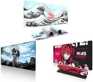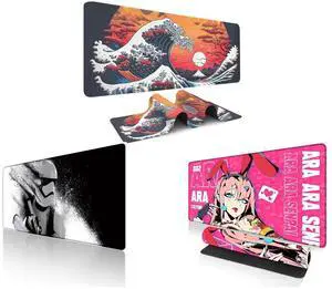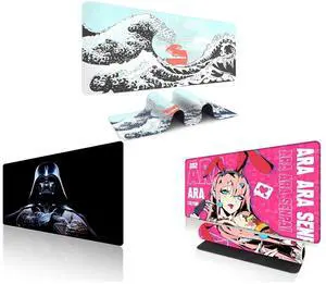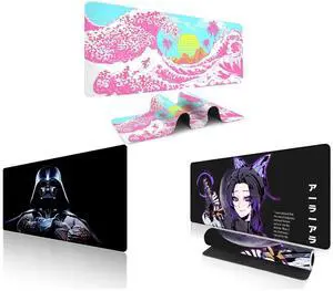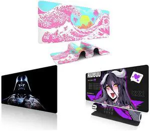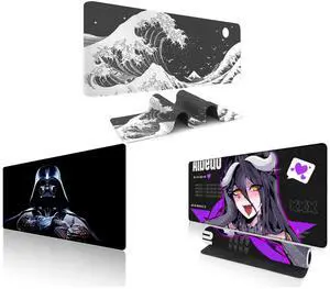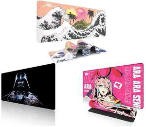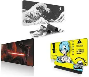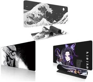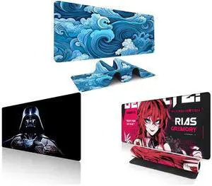 Alpha Fit Classic Great Wave off Kanagawa Gaming Mouse Pad XXL (35.4" x 15.7") - Traditional Blue Japanese Art Desk Mat - Non-Slip Rubber Base for Office and Alpha Fit Star Wars Gaming Mouse Pad XXL (31.5" x 11.8") - Darth Vader Dark Side Art - Large Mouse Pad Extended - Extra Large Gaming Mouse Pads Sith Lord Desk Mat 31 and Alpha Fit Anime Gaming Mouse Pad XXL (35.4" x 15.7") - Crimson Red Haired Demon Girl - Large Mouse Pad Extended - Extra Large Gaming Mouse Pads Gothic Waifu Style - 01