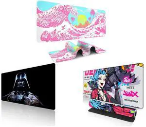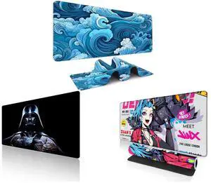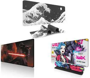 Alpha Fit Classic Great Wave off Kanagawa Gaming Mouse Pad XXL (35.4" x 15.7") - Traditional Blue Japanese Art Desk Mat - Non-Slip Rubber Base for Office and Alpha Fit Star Wars Gaming Mouse Pad XXL (31.5" x 11.8") - Darth Vader Dark Side Art - Large Mouse Pad Extended - Extra Large Gaming Mouse Pads Sith Lord Desk Mat 31 and Alpha Fit Anime Gaming Mouse Pad XXL (35.4" x 15.7") - Blue Punk Graffiti Girl - Large Mouse Pad Extended - Extra Large Gaming Mouse Pads Loose Cannon Style - 03