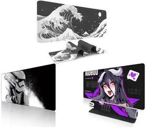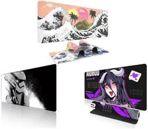 Alpha Fit Black & White Great Wave Gaming Mouse Pad XXL (35.4" x 15.7") - Monochrome Ink Wash Japanese Art Desk Mat - Minimalist Setup with Stitched Edges and Alpha Fit Star Wars Gaming Mouse Pad XXL (31.5" x 11.8") - Darth Vader Dark Side Art - Large Mouse Pad Extended - Extra Large Gaming Mouse Pads Sith Lord Desk Mat 31 and Alpha Fit Anime Gaming Mouse Pad XXL (35.4" x 15.7") - Dark Fantasy Succubus Girl - Large Mouse Pad Extended - Extra Large Gaming Mouse Pads Purple Waifu Style - 02