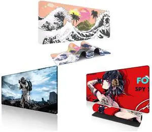 Alpha Fit Classic Great Wave off Kanagawa Gaming Mouse Pad XXL (35.4" x 15.7") - Traditional Blue Japanese Art Desk Mat - Non-Slip Rubber Base for Office and Alpha Fit Starwar Gaming Mouse Pad XXL (31.5" x 11.8") - Star Wars Themed Large Mouse Pad - Extra Large Gaming Mouse Pads with Non-Slip Rubber Base & Stitched Edges for Sci-Fi Setup and Alpha Fit Anime Gaming Mouse Pad XXL (35.4" x 15.7") - Red Rose Assassin Girl - Large Mouse Pad Extended - Extra Large Gaming Mouse Pads Secret Agent Style - 11