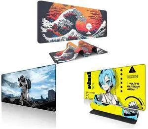 Alpha Fit Orange Sunset Great Wave Gaming Mouse Pad XXL (35.4" x 15.7") - Warm Golden Hour Japanese Art Desk Mat - Lofi Aesthetic Extended Pad and Alpha Fit Starwar Gaming Mouse Pad XXL (31.5" x 11.8") - Star Wars Themed Large Mouse Pad - Extra Large Gaming Mouse Pads with Non-Slip Rubber Base & Stitched Edges for Sci-Fi Setup and Alpha Fit Anime Gaming Mouse Pad XXL (35.4" x 15.7") - Blue Punk Graffiti Girl - Large Mouse Pad Extended - Extra Large Gaming Mouse Pads Loose Cannon Style - 03