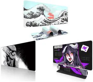 Alpha Fit Classic Great Wave off Kanagawa Gaming Mouse Pad XXL (35.4" x 15.7") - Traditional Blue Japanese Art Desk Mat - Non-Slip Rubber Base for Office and Alpha Fit Star Wars Gaming Mouse Pad XXL (31.5" x 11.8") - Stormtrooper Shatter Black & White - Large Mouse Pad Extended - Sci-Fi Galaxy Empire Desk Mat 12 and Alpha Fit Anime Gaming Mouse Pad XXL (35.4" x 15.7") - Crimson Red Haired Demon Girl - Large Mouse Pad Extended - Extra Large Gaming Mouse Pads Gothic Waifu Style - 01