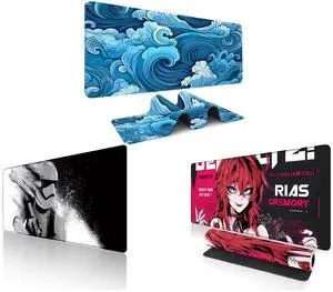 Alpha Fit Black & White Great Wave Gaming Mouse Pad XXL (35.4" x 15.7") - Monochrome Ink Wash Japanese Art Desk Mat - Minimalist Setup with Stitched Edges and Alpha Fit Star Wars Gaming Mouse Pad XXL (31.5" x 11.8") - Imperial Stormtrooper & Star Destroyer Battle Art - Large Extended Desk Mat - Non-Slip Rubber Base for PC & Laptop Gaming Setup and Alpha Fit Anime Gaming Mouse Pad XXL (35.4" x 15.7") - Crimson Red Haired Demon Girl - Large Mouse Pad Extended - Extra Large Gaming Mouse Pads Gothic Waifu Style - 01