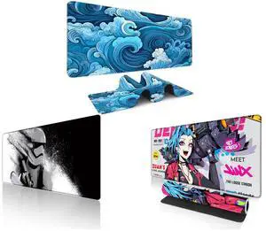 Alpha Fit Black & White Great Wave Gaming Mouse Pad XXL (35.4" x 15.7") - Monochrome Ink Wash Japanese Art Desk Mat - Minimalist Setup with Stitched Edges and Alpha Fit Starwar Gaming Mouse Pad XXL (31.5" x 11.8") - Star Wars Themed Large Mouse Pad - Extra Large Gaming Mouse Pads with Non-Slip Rubber Base & Stitched Edges for Sci-Fi Setup and Alpha Fit Anime Gaming Mouse Pad XXL (35.4" x 15.7") - Blue Punk Graffiti Girl - Large Mouse Pad Extended - Extra Large Gaming Mouse Pads Loose Cannon Style - 03