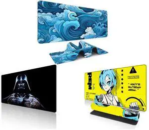 Alpha Fit Classic Great Wave off Kanagawa Gaming Mouse Pad XXL (35.4" x 15.7") - Traditional Blue Japanese Art Desk Mat - Non-Slip Rubber Base for Office and Alpha Fit Star Wars Gaming Mouse Pad XXL (31.5" x 11.8") - Darth Vader Dark Side Art - Large Mouse Pad Extended - Extra Large Gaming Mouse Pads Sith Lord Desk Mat 31 and Alpha Fit Anime Gaming Mouse Pad XXL (35.4" x 15.7") - Cyberpunk Blue Haired Girl - Large Mouse Pad Extended - Extra Large Gaming Mouse Pads Yellow Caution Style - 07