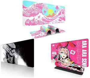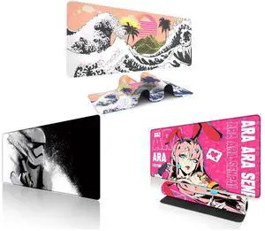 Alpha Fit Orange Sunset Great Wave Gaming Mouse Pad XXL (35.4" x 15.7") - Warm Golden Hour Japanese Art Desk Mat - Lofi Aesthetic Extended Pad and Alpha Fit Starwar Gaming Mouse Pad XXL (31.5" x 11.8") - Star Wars Themed Large Mouse Pad - Extra Large Gaming Mouse Pads with Non-Slip Rubber Base & Stitched Edges for Sci-Fi Setup and Alpha Fit Anime Gaming Mouse Pad XXL (35.4" x 15.7") - Pink Bunny Girl Waifu - Large Mouse Pad Extended - Extra Large Gaming Mouse Pads Ara Ara Senpai Style - 04