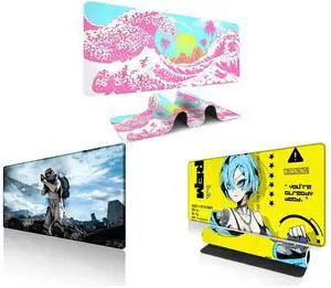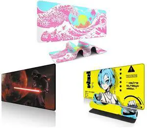 Alpha Fit Pink Sakura Great Wave Gaming Mouse Pad XXL (35.4" x 15.7") - Cute Cherry Blossom Japanese Art Desk Mat - Kawaii Aesthetic Extended Mousepad and Alpha Fit Starwar Gaming Mouse Pad XXL (31.5" x 11.8") - Star Wars Themed Large Mouse Pad - Extra Large Gaming Mouse Pads with Non-Slip Rubber Base & Stitched Edges for Sci-Fi Setup and Alpha Fit Anime Gaming Mouse Pad XXL (35.4" x 15.7") - Cyberpunk Blue Haired Girl - Large Mouse Pad Extended - Extra Large Gaming Mouse Pads Yellow Caution Style - 07