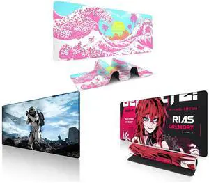 Alpha Fit Pink Sakura Great Wave Gaming Mouse Pad XXL (35.4" x 15.7") - Cute Cherry Blossom Japanese Art Desk Mat - Kawaii Aesthetic Extended Mousepad and Alpha Fit Starwar Gaming Mouse Pad XXL (31.5" x 11.8") - Star Wars Themed Large Mouse Pad - Extra Large Gaming Mouse Pads with Non-Slip Rubber Base & Stitched Edges for Sci-Fi Setup and Alpha Fit Anime Gaming Mouse Pad XXL (35.4" x 15.7") - Blue Punk Graffiti Girl - Large Mouse Pad Extended - Extra Large Gaming Mouse Pads Loose Cannon Style - 03