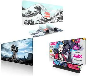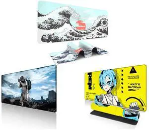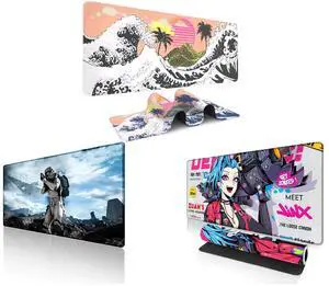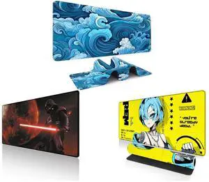 Alpha Fit Classic Great Wave off Kanagawa Gaming Mouse Pad XXL (35.4" x 15.7") - Traditional Blue Japanese Art Desk Mat - Non-Slip Rubber Base for Office and Alpha Fit Starwar Gaming Mouse Pad XXL (31.5" x 11.8") - Star Wars Themed Large Mouse Pad - Extra Large Gaming Mouse Pads with Non-Slip Rubber Base & Stitched Edges for Sci-Fi Setup and Alpha Fit Anime Gaming Mouse Pad XXL (35.4" x 15.7") - Cyberpunk Blue Haired Girl - Large Mouse Pad Extended - Extra Large Gaming Mouse Pads Yellow Caution Style - 07