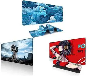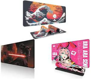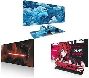 Alpha Fit Classic Great Wave off Kanagawa Gaming Mouse Pad XXL (35.4" x 15.7") - Traditional Blue Japanese Art Desk Mat - Non-Slip Rubber Base for Office and Alpha Fit Starwar Gaming Mouse Pad XXL (31.5" x 11.8") - Star Wars Themed Large Mouse Pad - Extra Large Gaming Mouse Pads with Non-Slip Rubber Base & Stitched Edges for Sci-Fi Setup and Alpha Fit Anime Gaming Mouse Pad XXL (35.4" x 15.7") - Crimson Red Haired Demon Girl - Large Mouse Pad Extended - Extra Large Gaming Mouse Pads Gothic Waifu Style - 01