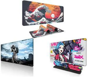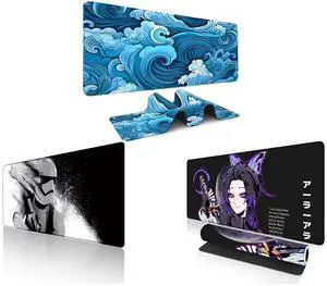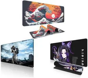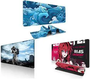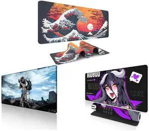 Alpha Fit Classic Great Wave off Kanagawa Gaming Mouse Pad XXL (35.4" x 15.7") - Traditional Blue Japanese Art Desk Mat - Non-Slip Rubber Base for Office and Alpha Fit Star Wars Gaming Mouse Pad XXL (31.5" x 11.8") - Imperial Stormtrooper & Star Destroyer Battle Art - Large Extended Desk Mat - Non-Slip Rubber Base for PC & Laptop Gaming Setup and Alpha Fit Anime Gaming Mouse Pad XXL (35.4" x 15.7") - Crimson Red Haired Demon Girl - Large Mouse Pad Extended - Extra Large Gaming Mouse Pads Gothic Waifu Style - 01