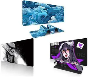 Alpha Fit Black & White Great Wave Gaming Mouse Pad XXL (35.4" x 15.7") - Monochrome Ink Wash Japanese Art Desk Mat - Minimalist Setup with Stitched Edges and Alpha Fit Starwar Gaming Mouse Pad XXL (31.5" x 11.8") - Star Wars Themed Large Mouse Pad - Extra Large Gaming Mouse Pads with Non-Slip Rubber Base & Stitched Edges for Sci-Fi Setup and Alpha Fit Anime Gaming Mouse Pad XXL (35.4" x 15.7") - Dark Fantasy Succubus Girl - Large Mouse Pad Extended - Extra Large Gaming Mouse Pads Purple Waifu Style - 02