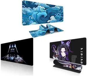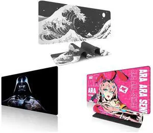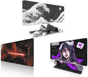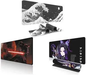 Alpha Fit Classic Great Wave off Kanagawa Gaming Mouse Pad XXL (35.4" x 15.7") - Traditional Blue Japanese Art Desk Mat - Non-Slip Rubber Base for Office and Alpha Fit Star Wars Gaming Mouse Pad XXL (31.5" x 11.8") - Darth Vader Dark Side Art - Large Mouse Pad Extended - Extra Large Gaming Mouse Pads Sith Lord Desk Mat 31 and Alpha Fit Anime Gaming Mouse Pad XXL (35.4" x 15.7") - Dark Fantasy Succubus Girl - Large Mouse Pad Extended - Extra Large Gaming Mouse Pads Purple Waifu Style - 02