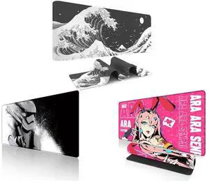 Alpha Fit Black & White Great Wave Gaming Mouse Pad XXL (35.4" x 15.7") - Monochrome Ink Wash Japanese Art Desk Mat - Minimalist Setup with Stitched Edges and Alpha Fit Star Wars Gaming Mouse Pad XXL (31.5" x 11.8") - Darth Vader Dark Side Art - Large Mouse Pad Extended - Extra Large Gaming Mouse Pads Sith Lord Desk Mat 31 and Alpha Fit Anime Gaming Mouse Pad XXL (35.4" x 15.7") - Pink Bunny Girl Waifu - Large Mouse Pad Extended - Extra Large Gaming Mouse Pads Ara Ara Senpai Style - 04
