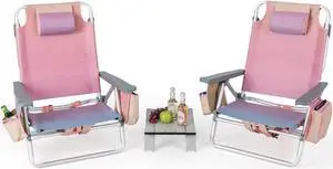 STRONGBACK Low Gravity Beach Chair with Built-in Lumbar Back Support - Heavy Duty Portable Folding Beach Chair for Adults - Blue