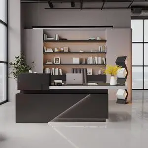 Bestier 59" Executive Office Desk with Drawers, Computer Desk with Keyboard Tray, Writing Study Workstation for Home Office with Open Shelves, Grey Washed Walnut