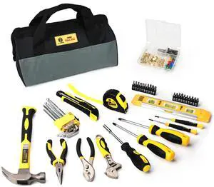 142 PCS Tool Set, Home Repairing Tool Kit with 13-Inch Wide Mouth Open Storage Tool Bag, Portable Home Tool Kit Including Hammer, Screwdriver, and Household Tools