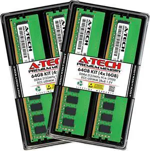 A-Tech 64GB (4x16GB) 2Rx8 PC4-17000 / PC4-17000E DDR4 2133 MHz ECC UDIMM 1.2V ECC Unbuffered DIMM 288-Pin Dual Rank x8 Server & Workstation RAM Memory Upgrade Kit