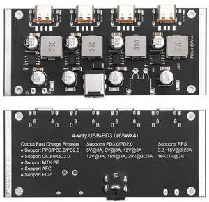 4-way PD65W Fast Charger Module PD3.0/2.0 QC3.0/2.0 FCP AFC Type-C DC12-30V Quick Charging Board for