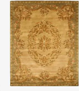 Hand Knotted Wool Beige Traditional Classic Modern Knot Rug, Made in India