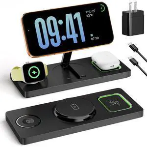 Foldable 3 in 1 Charging Station for Magsafe, Magnetic Phone and Watch Charger Stand for Apple Devices, Wireless Desk Charger Dock for iPhone 17 16 15 14 13 12 Series, Apple Watch and Airpods