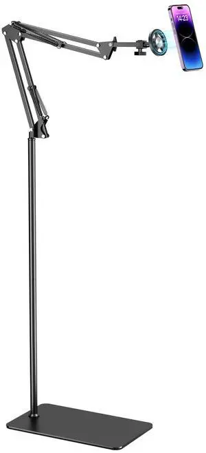 Phone Stand for Desk, Height Adjustable Desktop Phone Holder, 270°Angle Adjustable Tablet Stand with Weighted Base and Aluminum Alloy Support Rod for Phone and Tablet 4"-11"