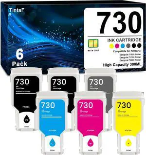 730 DesignJet Ink Cartridge 300-ml Kit 6-Color (Photo Black/Matte Black/Gray/Cyan/Magenta/Yellow) Replacement for HP 730 Ink Cartridges for DesignJet T1600 T1700 T2600 Printer