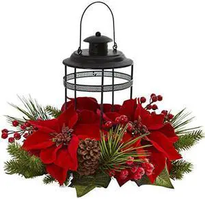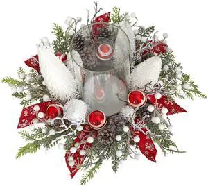 Nearly Natural 15" Lighted Forest Candle Holder Table Christmas Arrangement