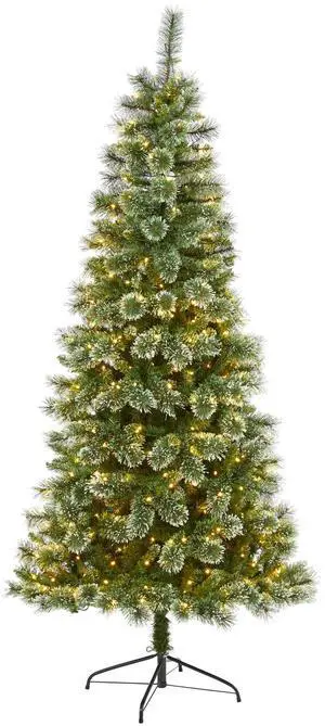 Casafield 7.5FT Pre-Lit Realistic Pencil Snow-Flocked Alpine Fir Artificial Holiday Christmas Tree with LED Lights and Metal Stand