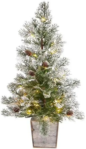 Nearly Natural 2' Pre-Lit Christmas Tree w/Pinecones in Decorative Planter