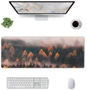 Landscape Forest Large Gaming Mouse Pad Plus a Coaster, 35.4 x 15.7 inches Desk Mat Extended XXL Mousepad with Stitched Edge Non-Slip Rubber, Desk Pad Computer Mouse Mat for Home Office
