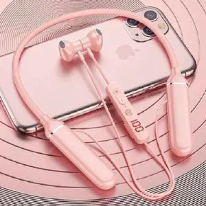 Pink Bluetooth Ear Clip Earbuds with Ear Hook, 5H Playback & Sweatproof for iPhone/Android
