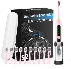 Adult Sonic Electric Toothbrush with 10 Brush Heads, Travel Case, and Wall Bracket, Suitable for Both Adults and Kids, IPX8 Waterproof, USB Charging, 42000VPM, Pink