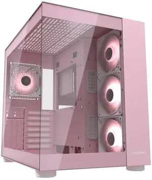 DIYPC ARGB-Q1.V2-P Pink USB3.0 Tempered Glass Micro ATX Gaming Computer Case w/ Dual Tempered Glass Panel and 3 x ARGB 120mm Fans (Pre-Installed)