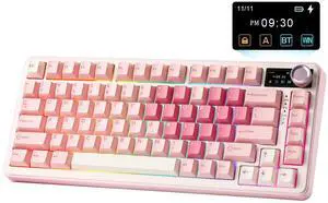 x Aula Gaming Keyboard, Wireless Creamy Keyboard, Bluetooth Computer Keyboards Ergonomic Pink Keyboard Full Size with Number Pad Light Up RGB Backlit Tri-Mode BT/2.4GHz/USB-C - K99