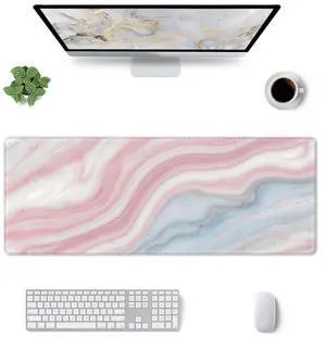 CANFLASHION Desk Pad,Office Desk Mat 31.5"11.8" Large Gaming Mouse Pad,Durable Extended Computer Mouse Pad,Waterproof Thick Big Mouse Pads Non-Slip Rubber Base Office Home Pink White Marble