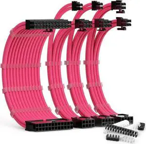 Sirlyr PSU Cable Extension,Customed Pre-Bend PC Power Supply Cable,1x 24 Pin ATX / 1x 8 (4+4) Pin EPS/Longer 2X 8 (6+2) Gold-Plated Pin Pcie,Nylon Sleeved Black Pink,4 Kits