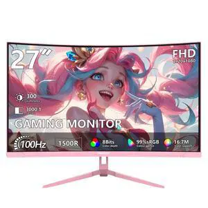 Raywego 34 inch Pink Curved Gaming Comupter Monitor 165Hz UWQHD 3440x1440,1500R -PIP,1ms (MPRT),HDR, 300nits,sRGB99%,FreeSync,HDMI2.0(TMDS) x2,DP1.4 x2,Eye Care, Supports Wall Mount 75x75mm