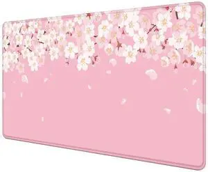 SXCKANG Cherry Blossom Desk Mat Cute, Pink Sakura Large Gaming Mouse Pad, Japanese Floral Flowers Wide Desk Pad Desk Decor, 31.5 x 15.7 Inch, Anime Aesthetic