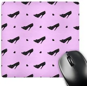 3dRose LLC 8 x 8 x 0.25 Inches Black and Pink High Heels and Hearts Fashion Art Pattern Mouse Pad (mp_47803_1)