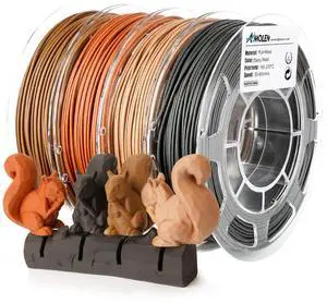 Wood PLA Filament Bundle 3D Printer Filament Wood Sets,Walnut,Cherry,Bamboo,Ebony,3D Printing Filament,PLA Filament 1.75mm,200g*4 Spools
