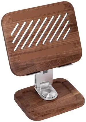 TlaroRiz Walnut-Wooden Laptop Stand Adjustable Height & Angle Aluminum Alloy Bracket 360 Degrees Rotatable Base-Wood Laptop Stand for Home,Office, Brown