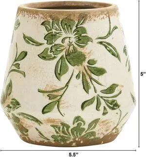 Nearly Natural 5.5" Tuscan Ceramic Green Scroll Planter