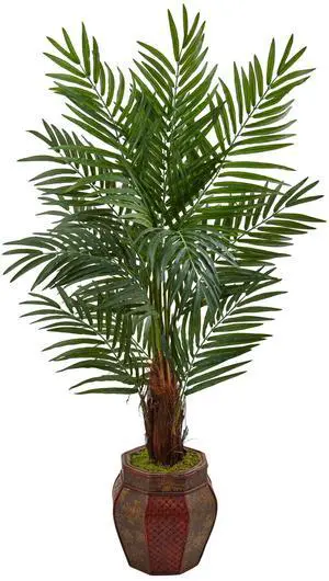 Nearly Natural 3.5' Golden Cane Artificial Palm Tree in Terra-Cotta Planter