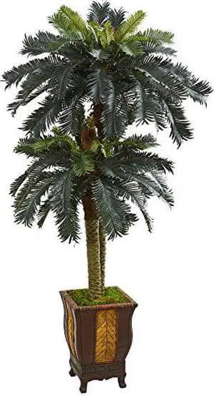6' Double Sago Palm Artificial Tree in Designer Planter