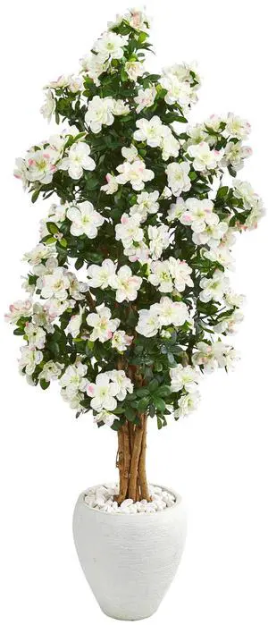 Nearly Natural 5' Azalea Artificial Tree in White Planter