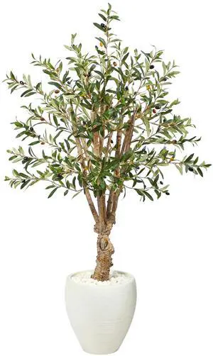 Nearly Natural 5775 5.5 ft. Ficus Artificial Tree in White Oval Planter UV Resistant - Indoor & Outdoor